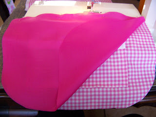 You will need to turn the bag right side out later. This is a good time to cut away the extra fabric in the curves so the bag will turn inside out neatly.