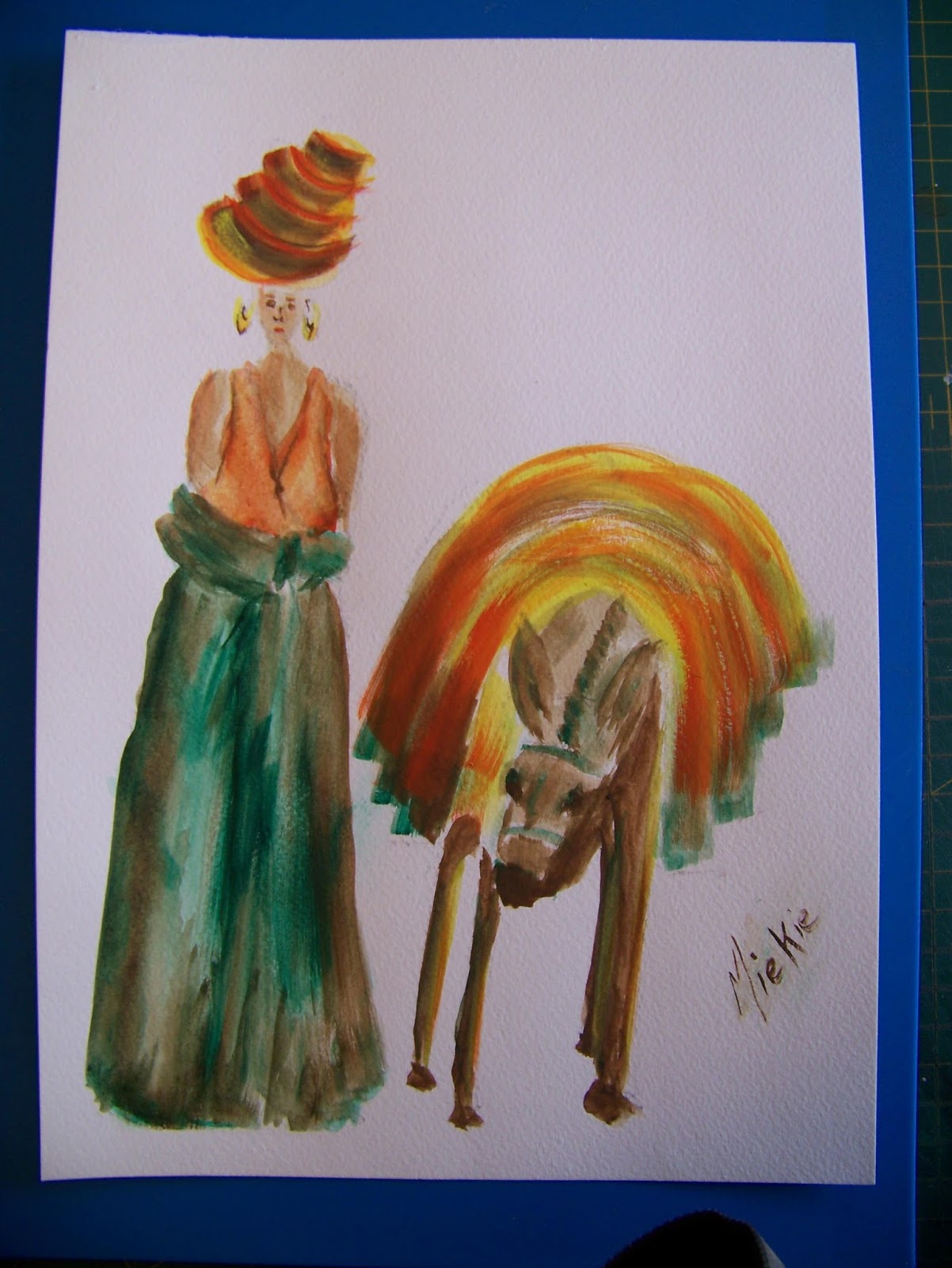 I finish the head gear with orange and yellow. The blouse is painted bright yellow.