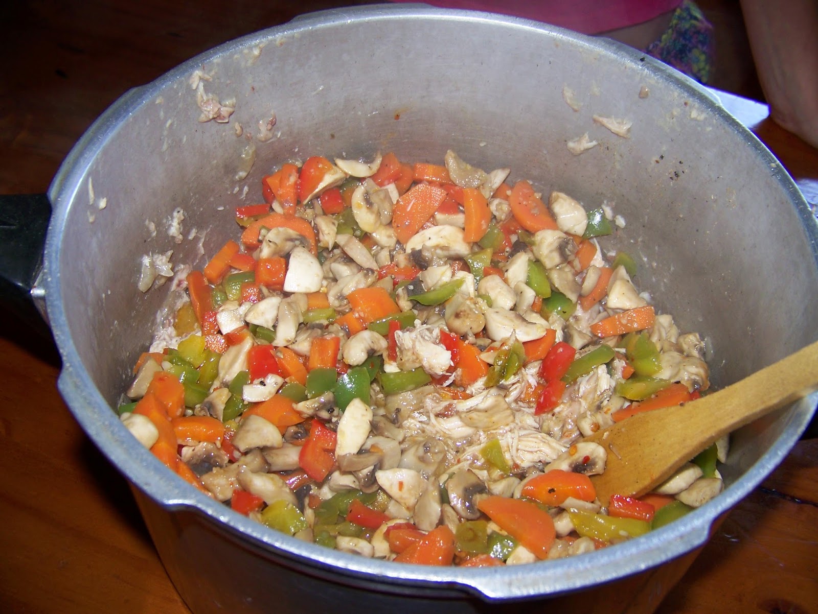 Stir the veggies into the chicken.