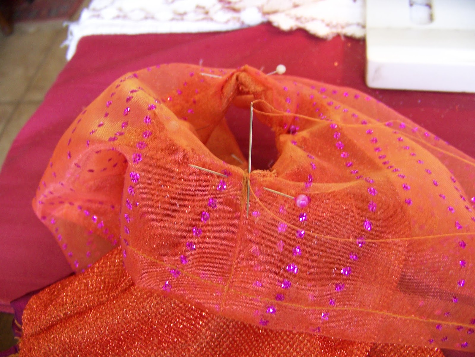 Even though I had enough organza to cut the full length of the top, I wanted a shorter version and simply folded the top away to cut the shortened hemline.