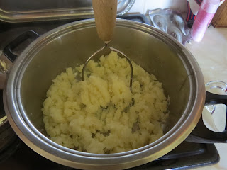 Mash the potatoes. Do not add milk, butter or anything else to the mashed potatoes. Allow to cool.
