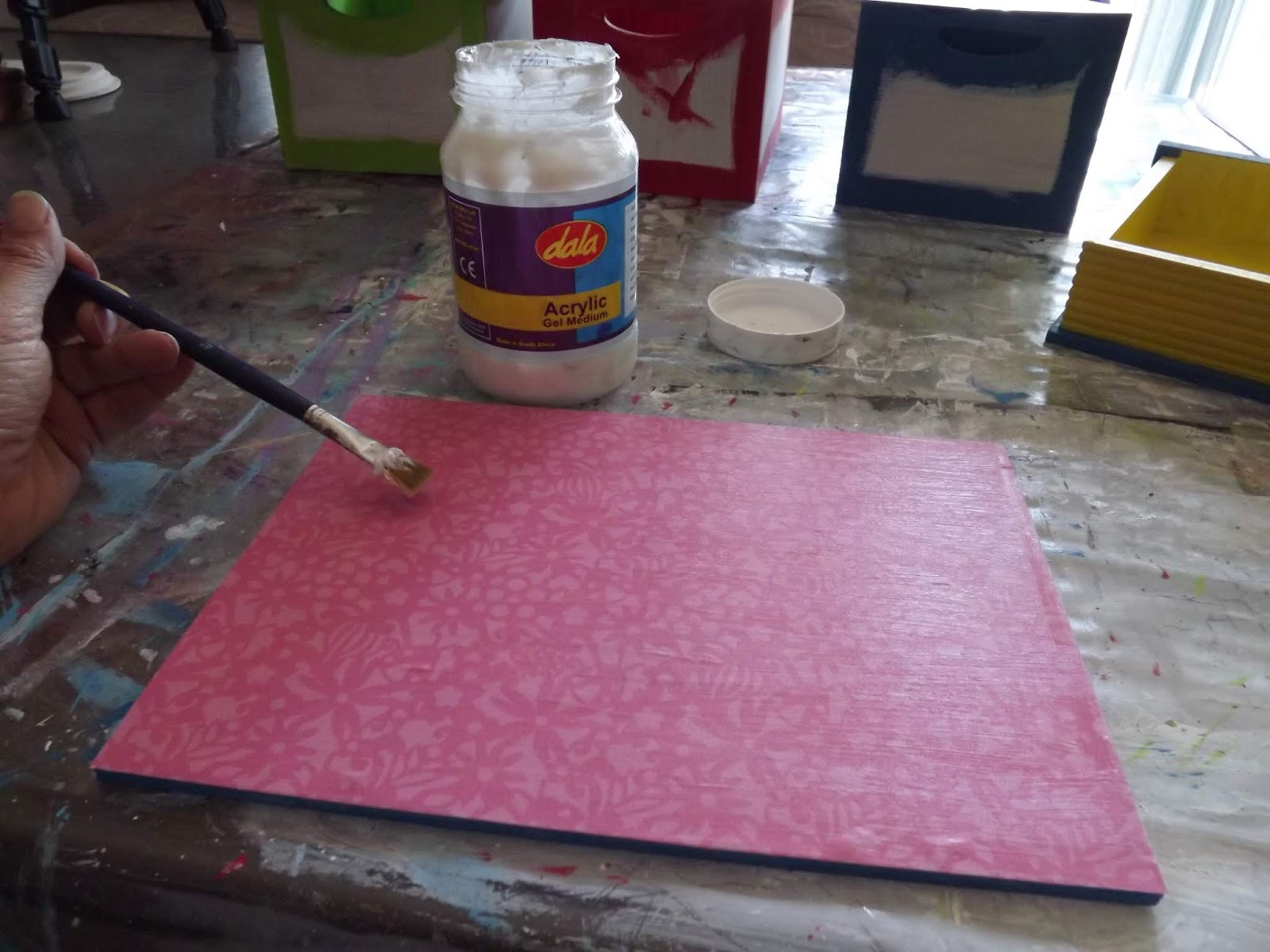 I then lather the sides that will be decoupaged with Dala Acrylic Gel Medium.