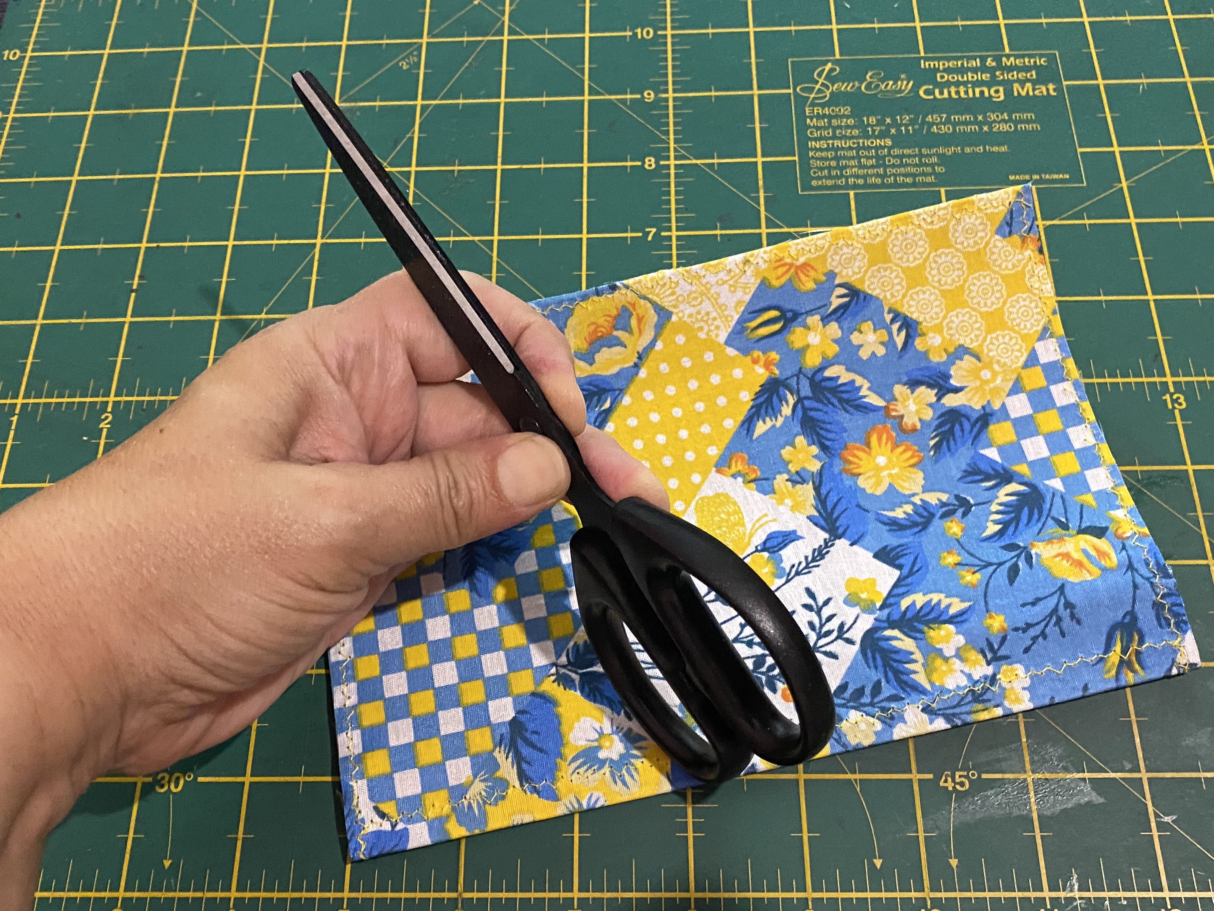 Sew all around the edges of the journal cover, as well as down and up the middle where the fold in the two pages is.