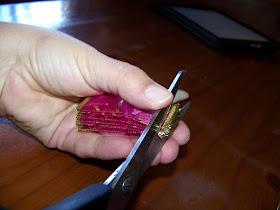 I prefer to make a tiny fold at the top of the angel's dress and to staple it again. This simply gives me a more secure base to which to attach the wings. This is my own trick and you can use it or loose it as you prefer.